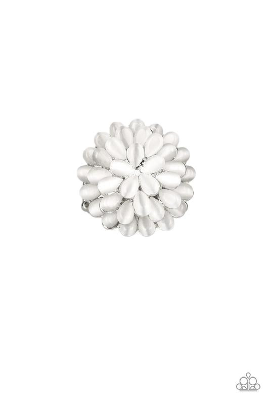 Row after row of teardrop cat's eye stones stack into a blast of blue petals atop the finger, creating a whimsical blossom. Features a stretchy band for a flexible fit.