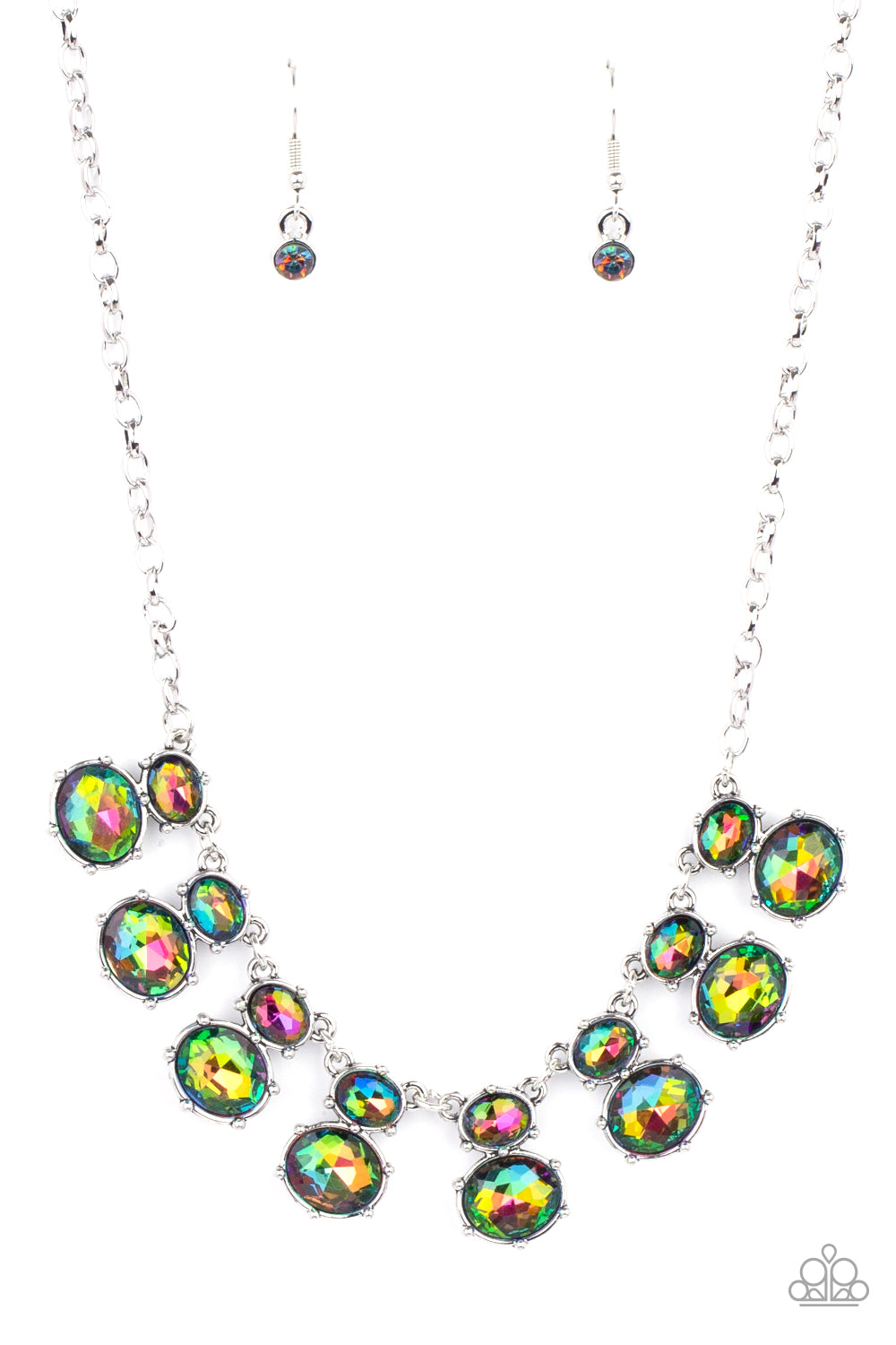 Double stacks of brilliant white oval cut gems link elegantly across the collar on a gmetal chain for a deliriously cosmic flair of glamour. Features an adjustable clasp closure.