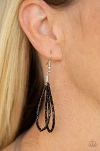 Strand after strand of metallic blue seed beads fall together to create a bold statement piece. Features an adjustable clasp closure.